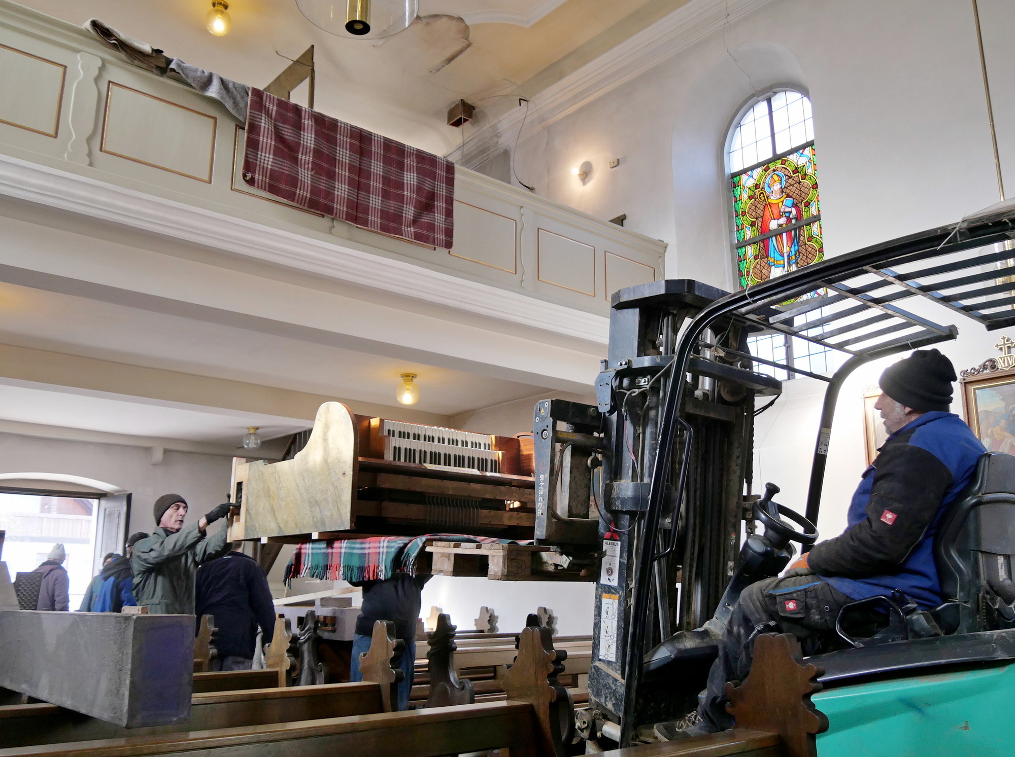 Dass die Gemeinschaft der Pfarrei St. Wolfgang grundsätzlich hinter dem Projekt steht, zeigte sich beim Abbau: Acht Männer waren nötig, um den schweren Spieltisch mittels Gabelstapler über die Brüstung der Empore zu heben. Das war eine spektakuläre Aktion, die man im Kirchenraum nicht alle Tage sieht.