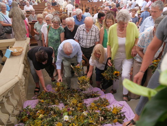 In diesem Jahr haben die KAB-Frauen rund 100 Kräutersträuße gebunden. Wohlriechende Blumen und Kräuter stehen dabei für die Heilkraft der Natur. Durch die Kräutersegnung soll Gottes Segen auf Haus, Hof, Mensch und Tier übergehen und Schutz sowie Heilung gewähren.