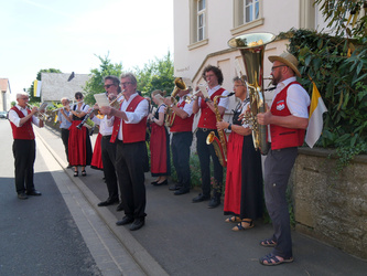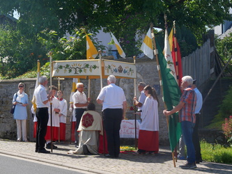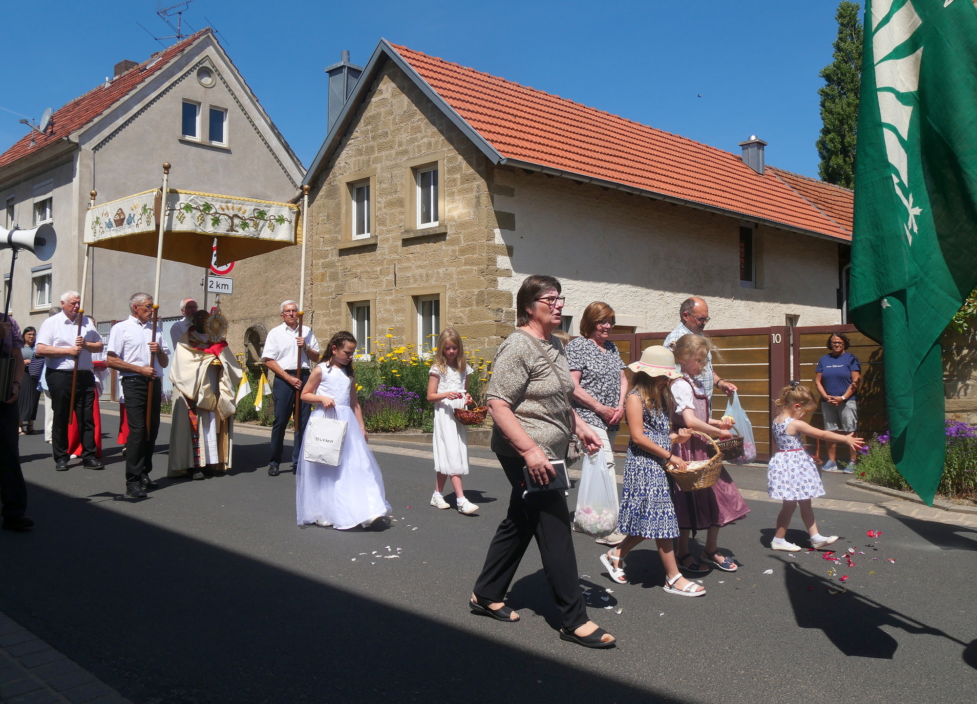 Als „Pilger der Hoffnung“ war die Kirchengemeinde der Pfarrei St. Wolfgang in Hausen bei ihrer Fronleichnamsprozession durch das mit Fahnen, Blumen und religiösen Gegenständen geschmückte Dorf unterwegs.