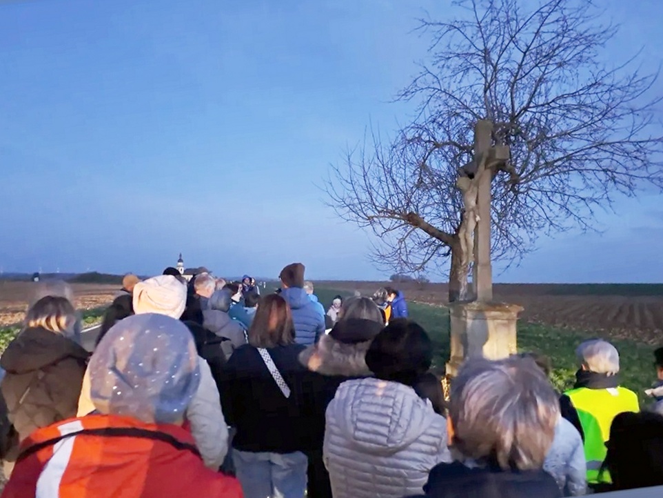 Danke an alle, die sich beim Kreuzweg engagiert haben und mitgegangen sind. Ein besonderes Dankeschön gilt den Freiwilligen Feuerwehren für die Absicherung der Wegstrecken. Die Wegstrecken wurden schweigend zurückgelegt. Der Gruppe voran wurde ein Kreuz mitgetragen. Auch hier wechselten sich die Kreuzträger jeweils ab.