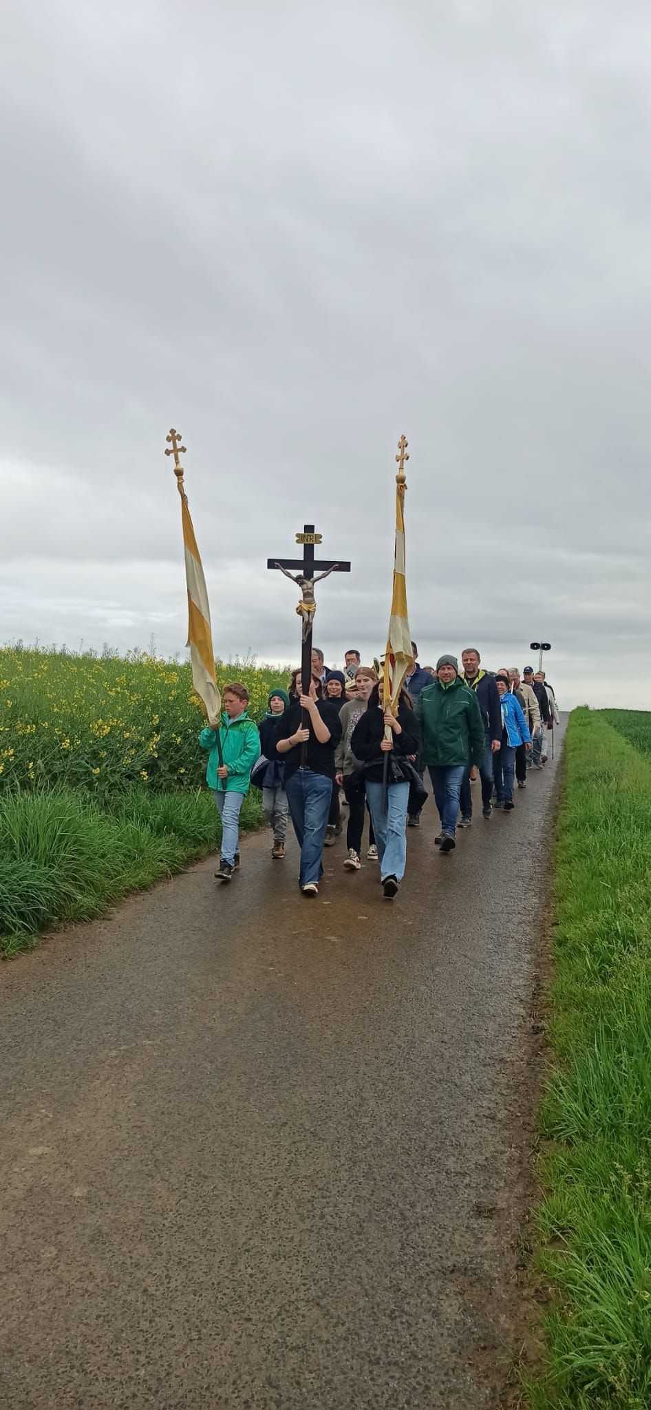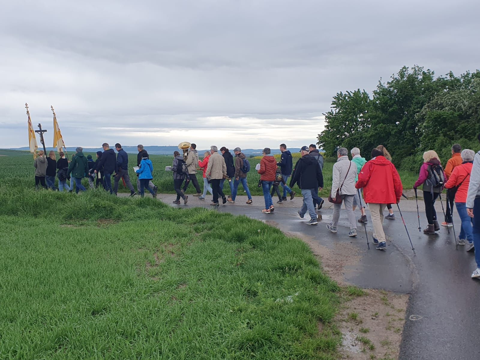 Leider war an diesem Tag kein perfektes Wallfahrer-Wetter, sodass sich nur der „harte Kern“ der Gläubigen einfand, um gemeinsam um 8.30 Uhr in Prosselsheim zu starten. Es ging wieder die gewohnte Strecke über die Betonwege nach Neusetz und weiter über den Fahrradweg nach Schnepfenbach, wo sich weitere Wallfahrer anschlossen.