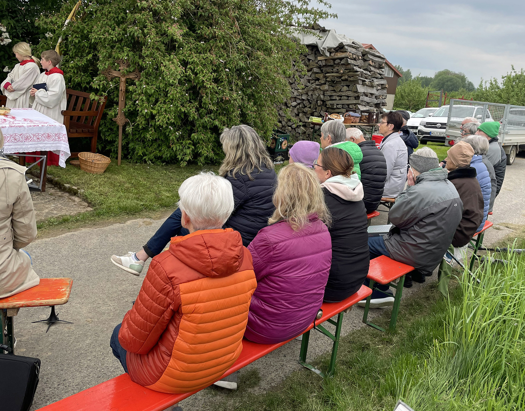 Am Vorabend des Christi-Himmelfahrt-Tages haben die Püssensheimer einen Wortgottesdienst im Freien gefeiert. Das war am Marienbildstock in der Püssensheimer Flur. Pastoralreferent Florian Meier gestaltete die besondere Wortgottes-Feier. Sie wurde von Musikanten aus Püssensheim musikalisch mitgestaltet.