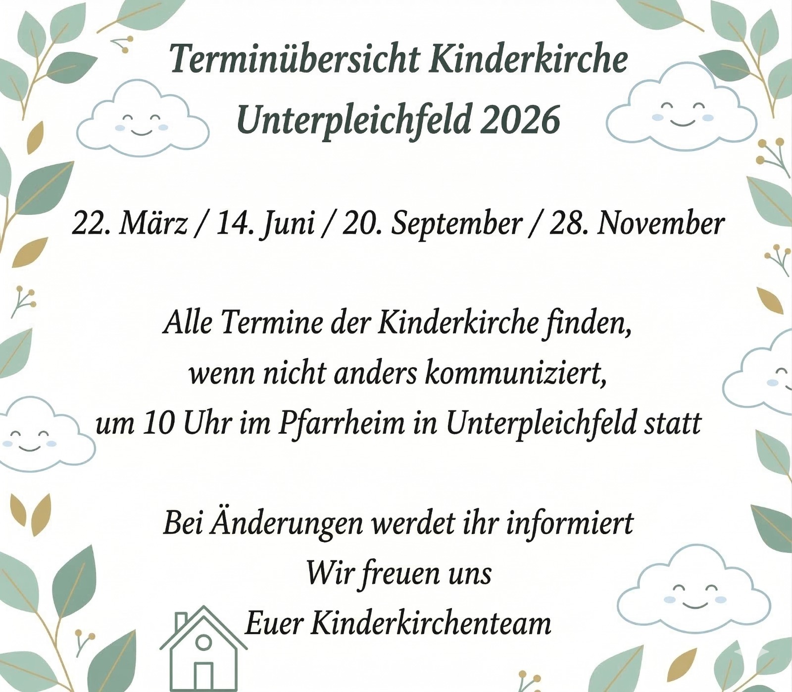 Herzliche Einladung zur Kinderkirche in Unterpleichfeld