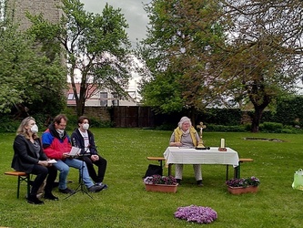 Ein besonderes Projekt der Pfarrei Opferbaum ist der "Gottesdienst am Lagerfeuer", der seit einigen Jahren am Pfingstmontag im Pfarrgarten gefeiert wird und an den sich eine Begegnung bei Stockbrot und Bratwurst anschließt.